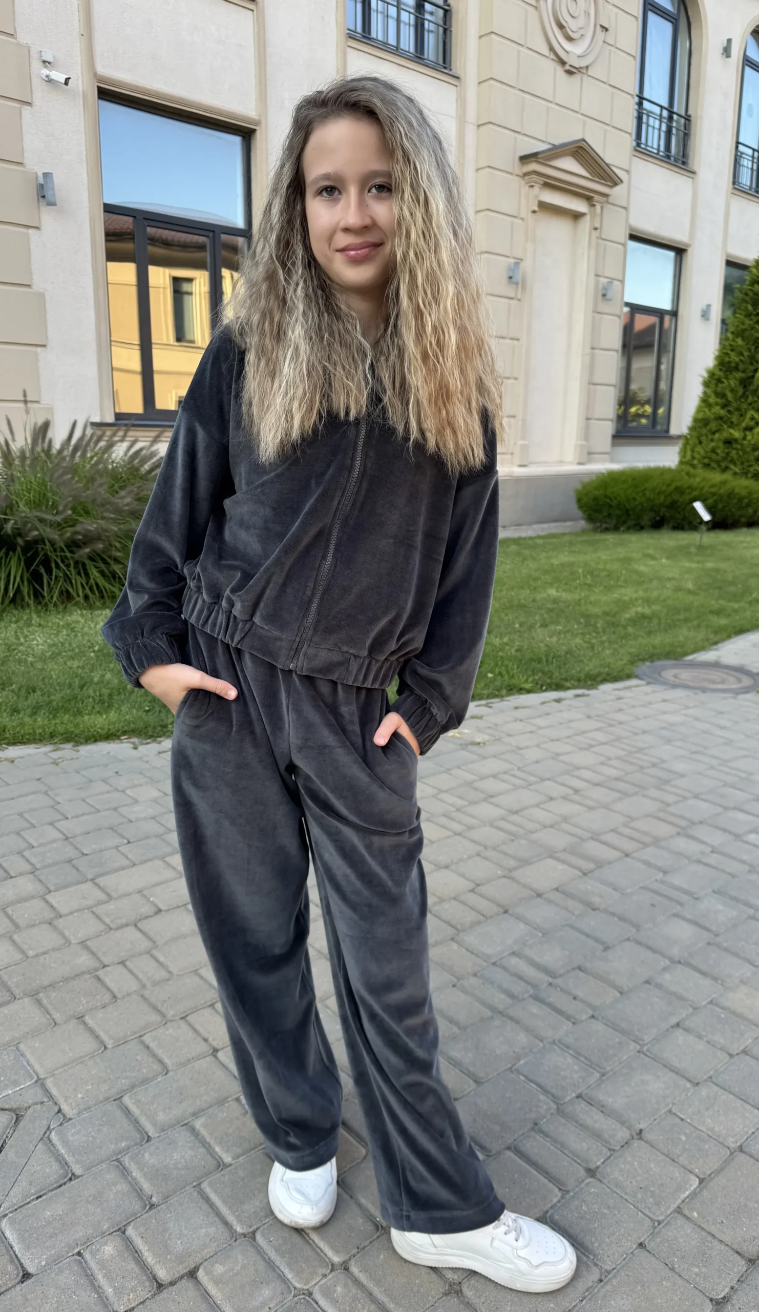 Made of premium cotton velor, this suit combines naturalness and tenderness.