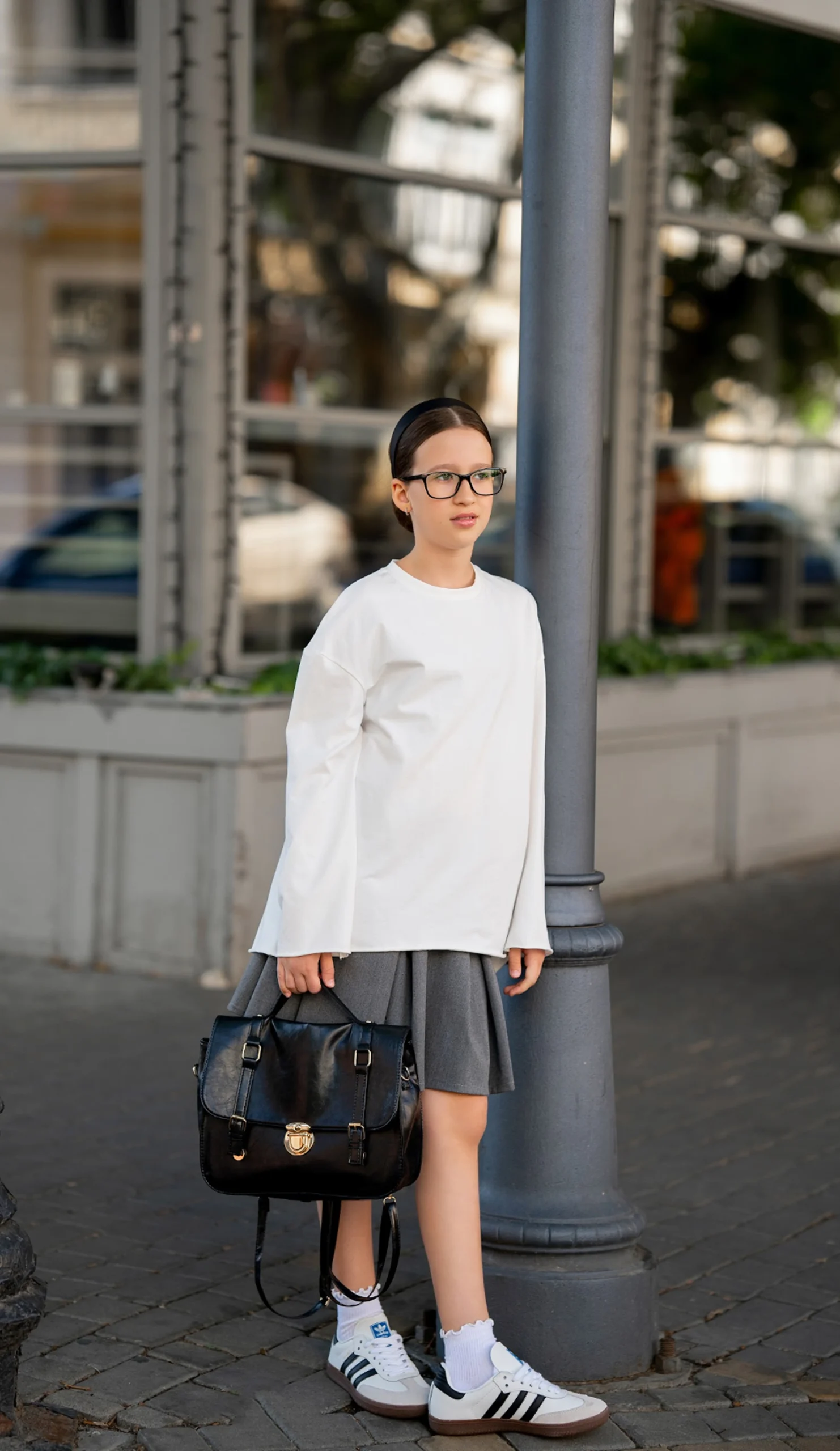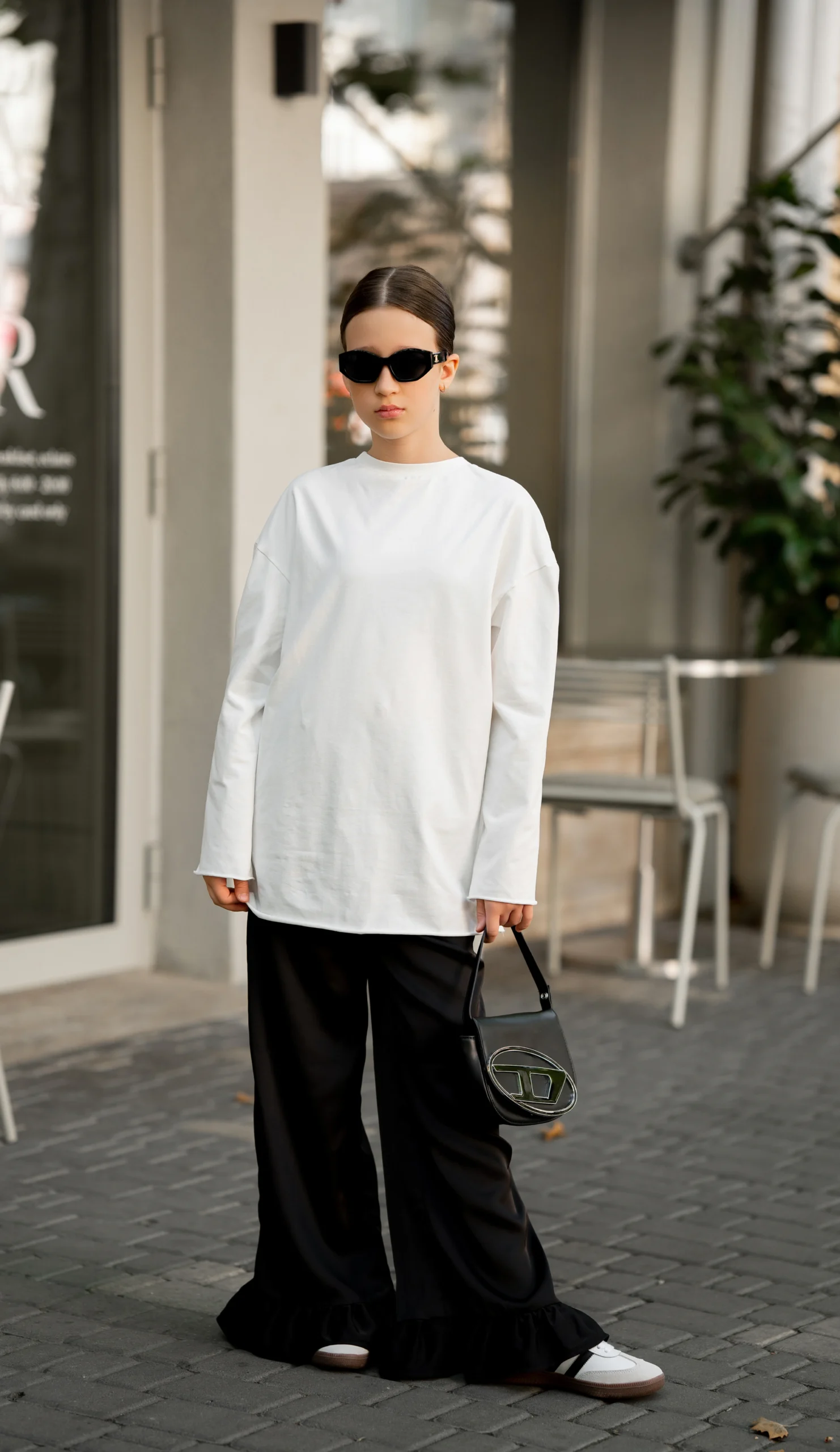 A basic loose-fitting long sleeve is a versatile item for school days and walks. It is made of soft premium cotton that is pleasant to the body and provides comfort throughout the day. It goes well with both classic school pants and sporty looks.