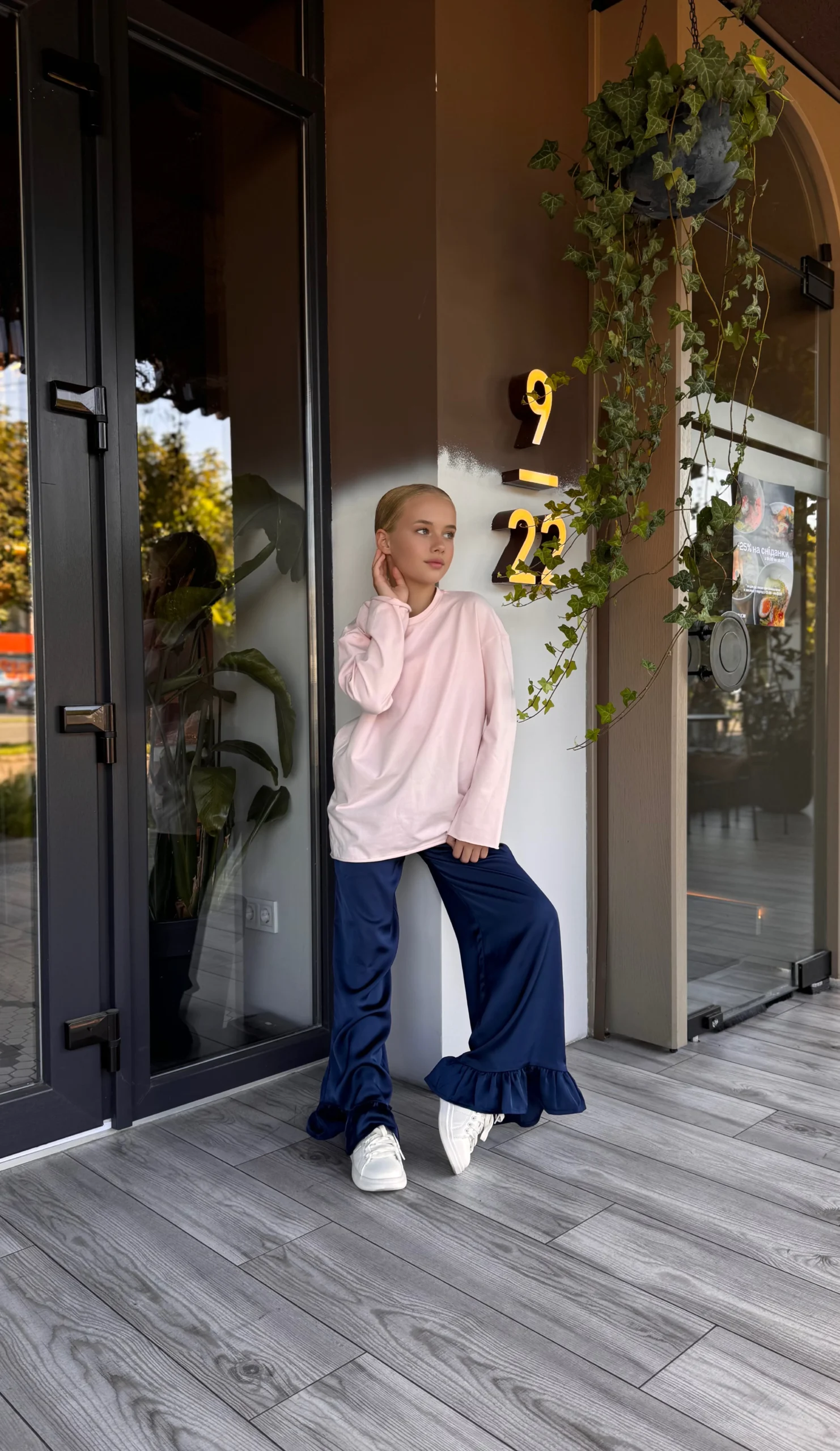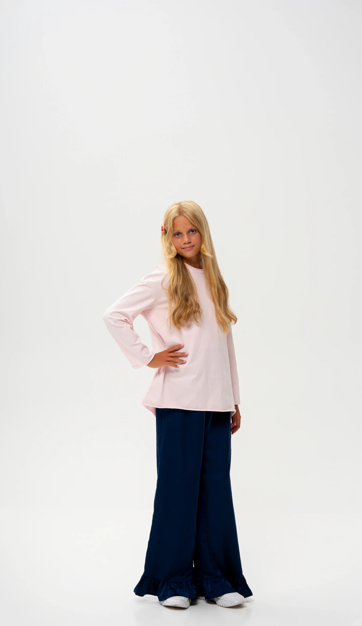 - Details: delicate flounces on the bottom of the pants for an accent and a stylish look.
